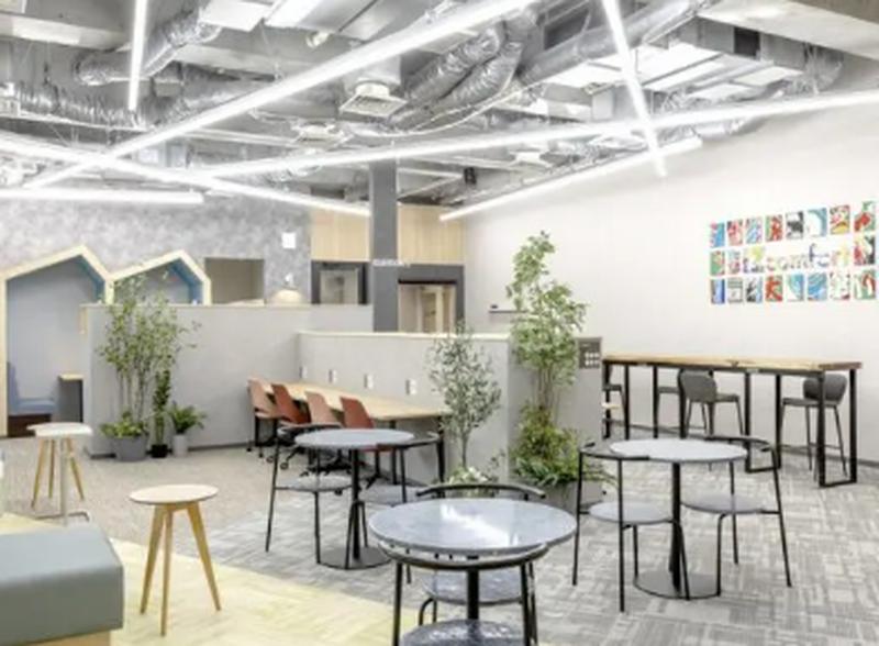 全席フリーアドレスのオープンなワークスペースで、カフェのようにくつろげる雰囲気が特徴です。