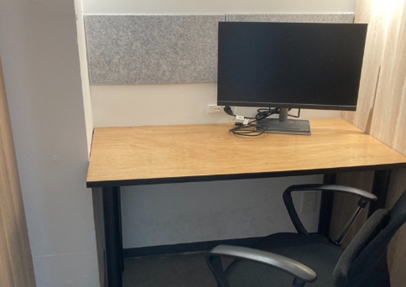 壁の上部が開いているタイプのセミプライベート個室ブースで、適度な開放感を保ちながら集中できる。