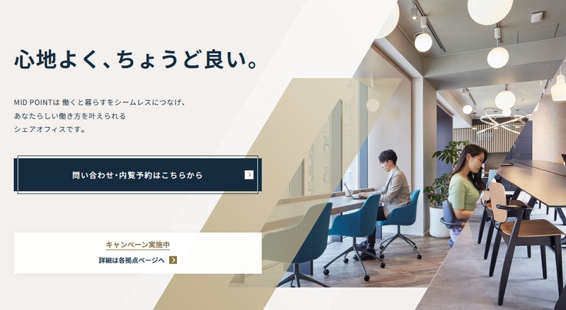 | 料金 | コワーキング:月額2,200円〜、個室:月額34,980円〜 |