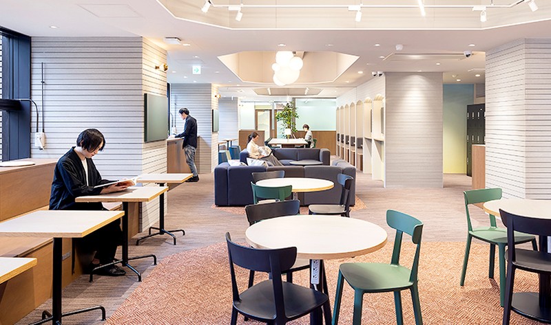 ホテルラウンジのような洗練された空間で、78席のオープンスペースと7つの会議室を完備しています。