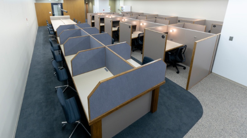全席で会話・通話・Web会議が可能で、モニター完備の個室は施錠も可能です。