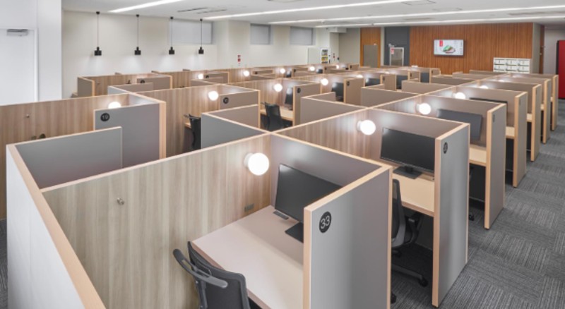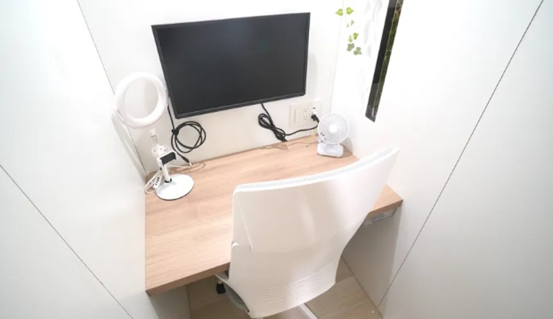 完全個室で窓付き、各部屋に個別空調を完備しているため、快適に作業できます。