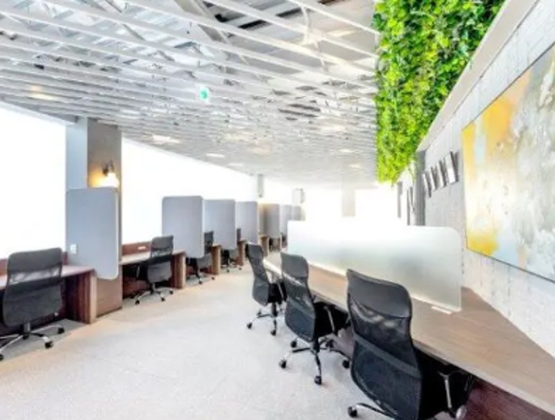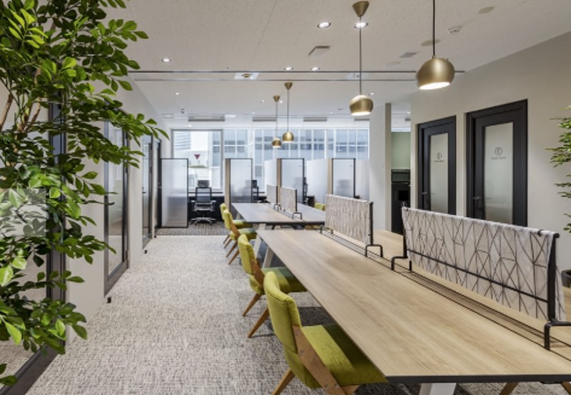 自然をテーマにした明るい空間で、63席のワークスペースがあります。