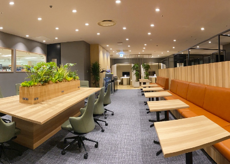 楽天地ビルの3階に位置しており、食事可能なカフェブース、WEB会議専用ブース、静かに集中できるエリアなど、多様なニーズに対応した空間設計が魅力となっています。