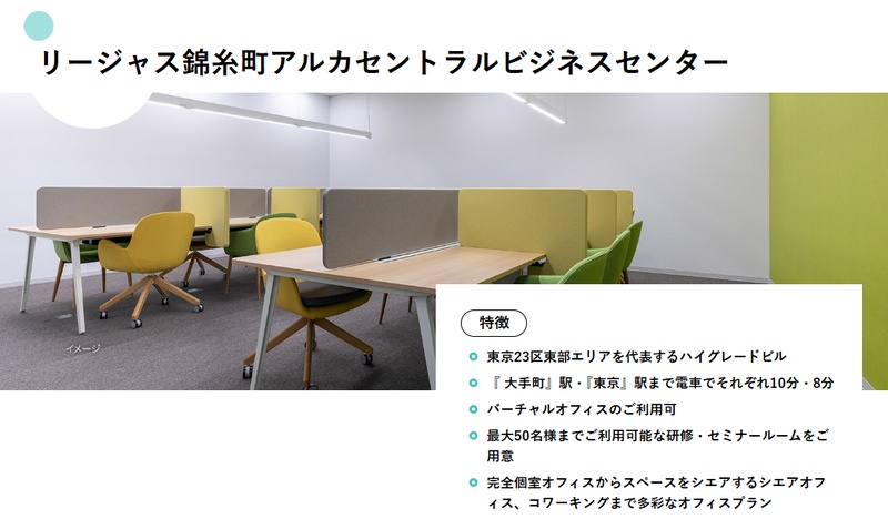 法人登記が可能なスペースを選べば、錦糸町の住所でオフィスを構えることもできます。
