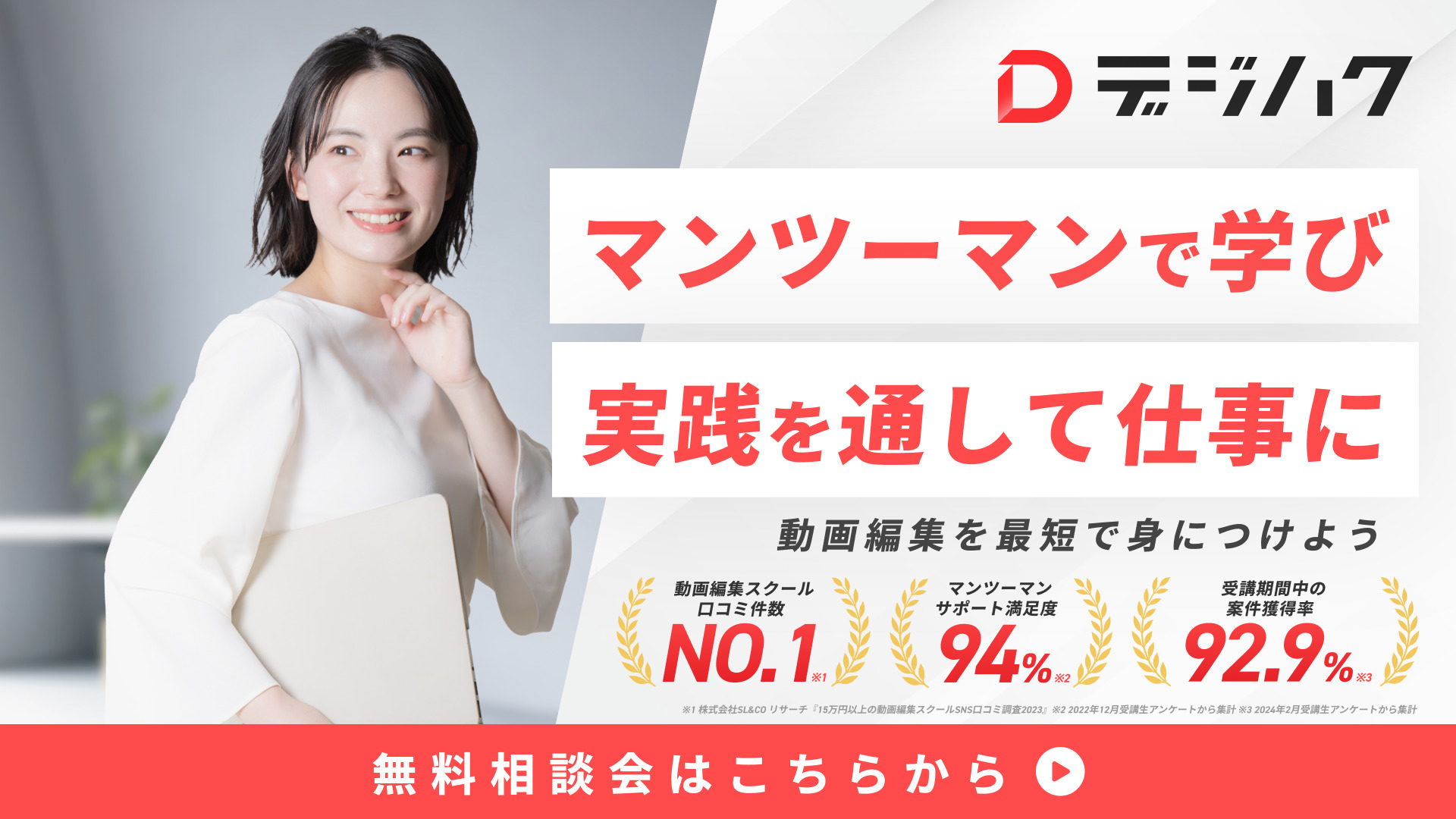 デジハクは、映像制作を始めたいすべての方に向けた動画編集スクールです。