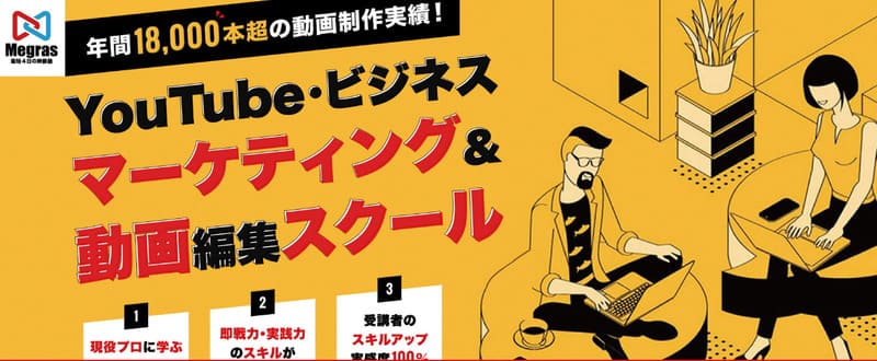Megrasは、初心者でも短期間で動画制作スキルと動画マーケティングノウハウをプロから学べます。