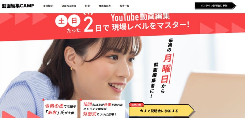 動画編集CAMPは、短期集中型の動画編集スクールです。