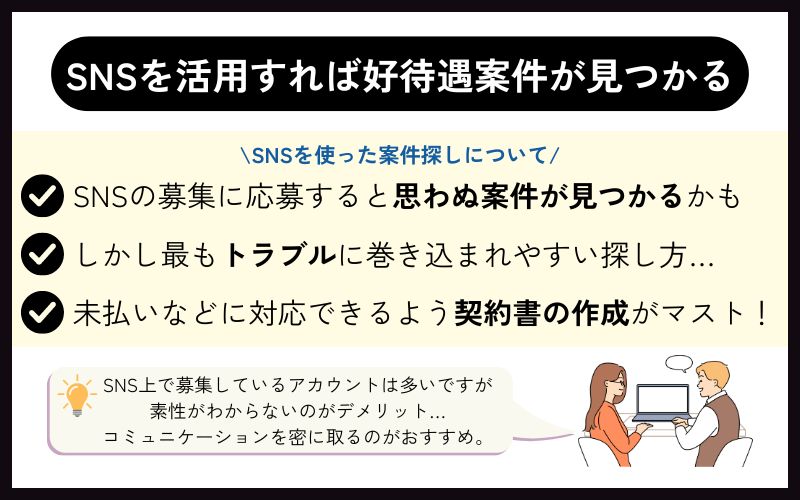 しかし案件を獲得できるようになると高収入に期待できるので、非常に夢のある副業です。
