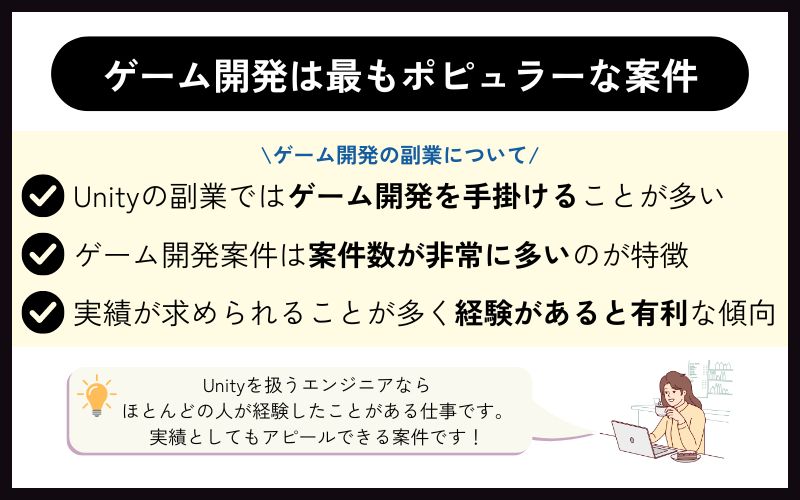 ゲーム開発案件は、Unityの最もポピュラーな副業です。
