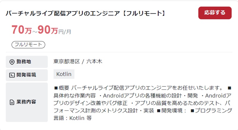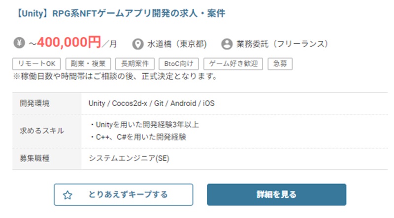 下記の案件はUnityの在宅/リモート求人の一例です。