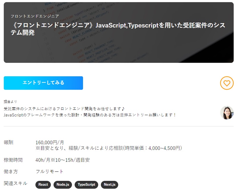 案件獲得の難易度は決して低くありませんが、数年間のフロントエンド開発経験があればチャレンジできるでしょう。