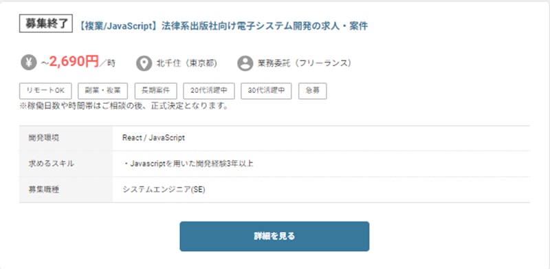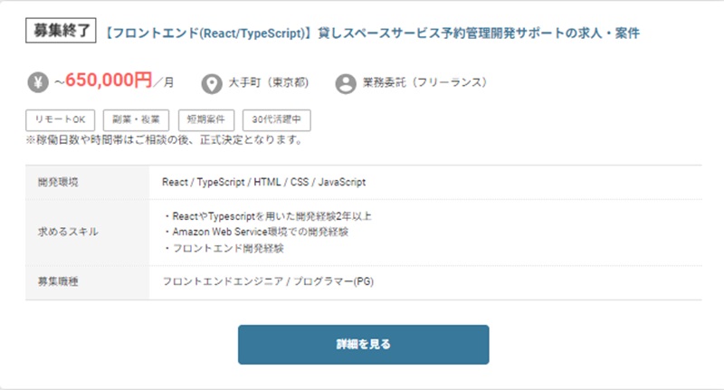 したがって案件獲得の難易度は高く、ベテランエンジニア向けの副業案件です。