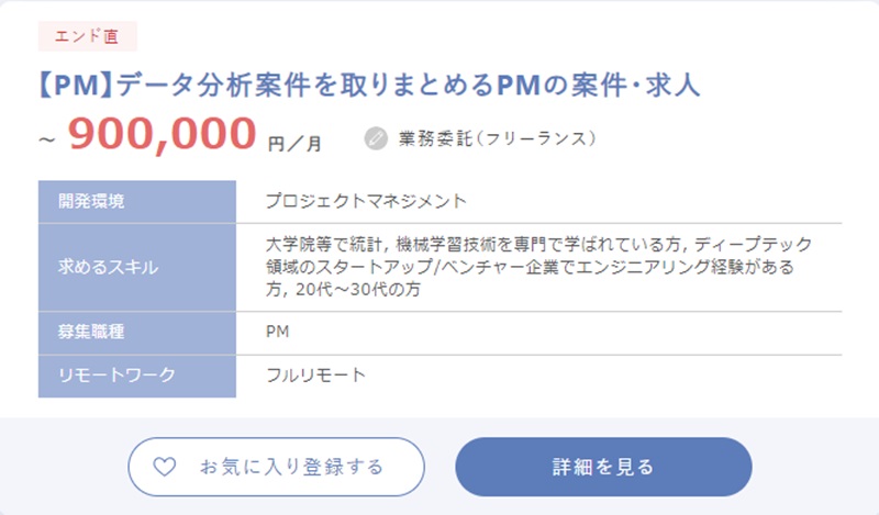 したがって、スキル・知識レベルが高いのは最低条件で、豊富な実務経験を求められる案件がほとんどを占めています。