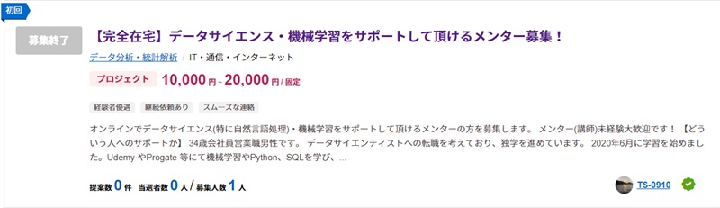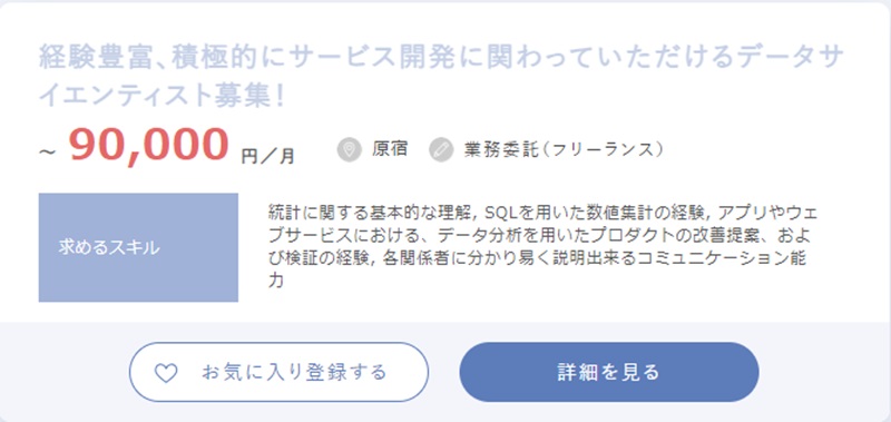 以下は土日だけでもできるデータサイエンティスト案件の一例です。
