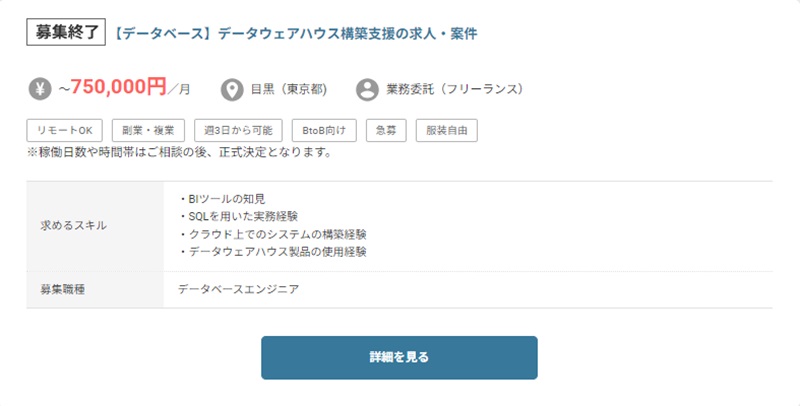 レバテックフリーランスに掲載されていた上記の案件は、フルリモートで参画できるデータベース構築案件です。