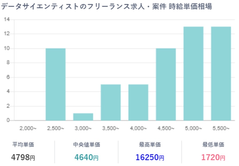 まずは副業データサイエンティストの時給単価を見てみましょう。