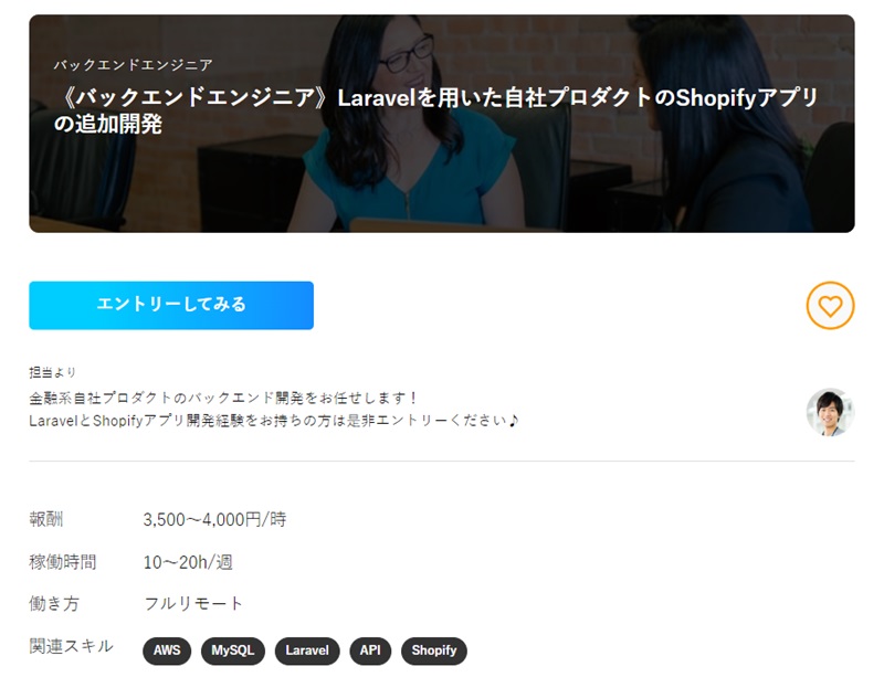 比較的必要スキルが少ない案件なので、経験が浅くLaravelのスキルアップを目指している方におすすめです。