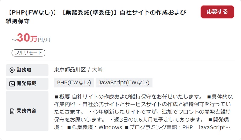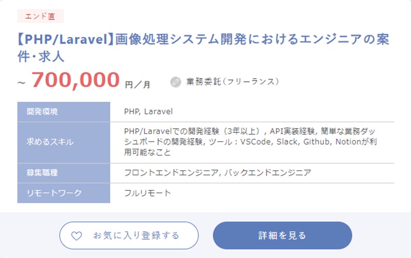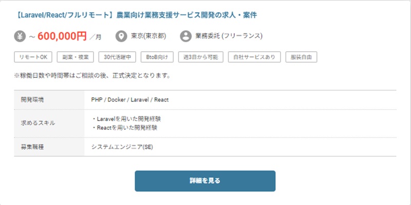 実際にフリーランスエージェントで募集されているLaravelの案件を紹介します。