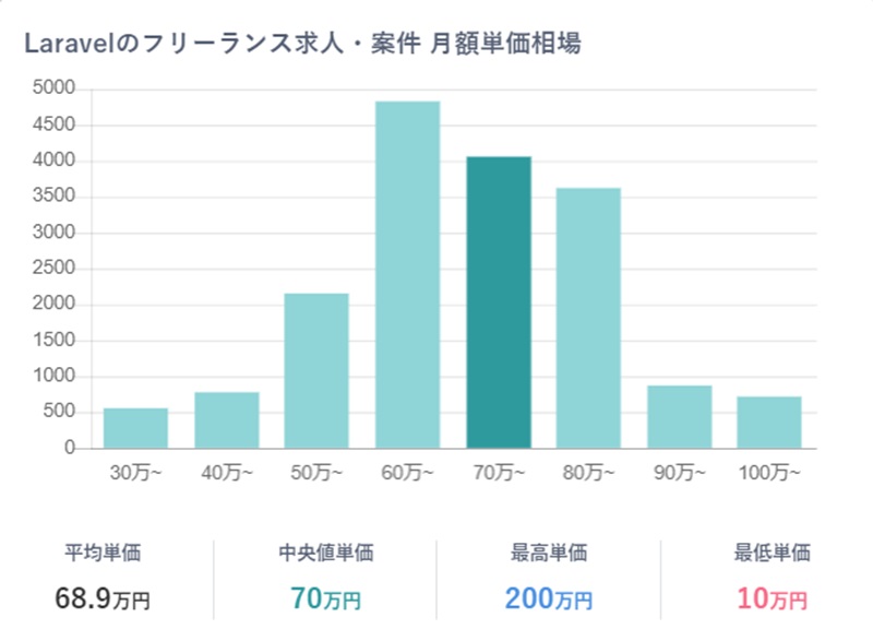 Laravelエンジニアの収入事情を推しはかるために、フリーランスLaravelエンジニアの平均単価を確認してみましょう。
