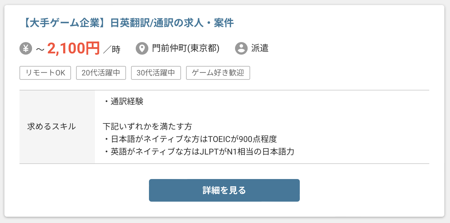 | 必要スキル | ・高いレベルの外国語理解力 ・文章力、言語化能力 ・外国の文化や習慣に対する知識や理解 |