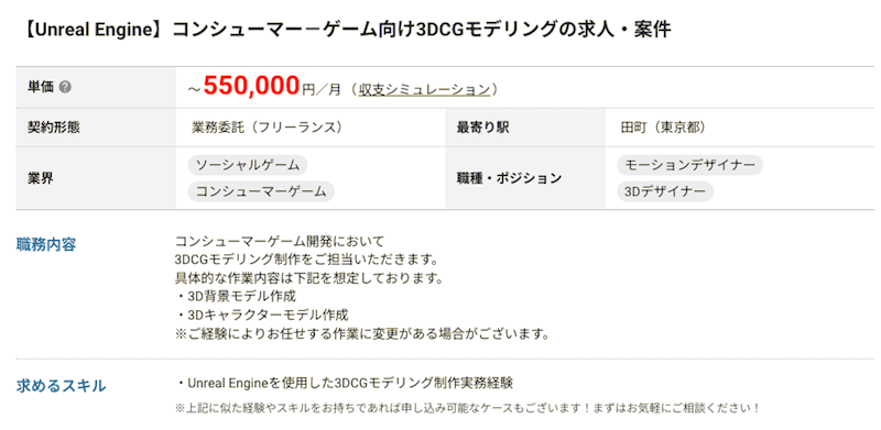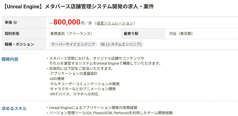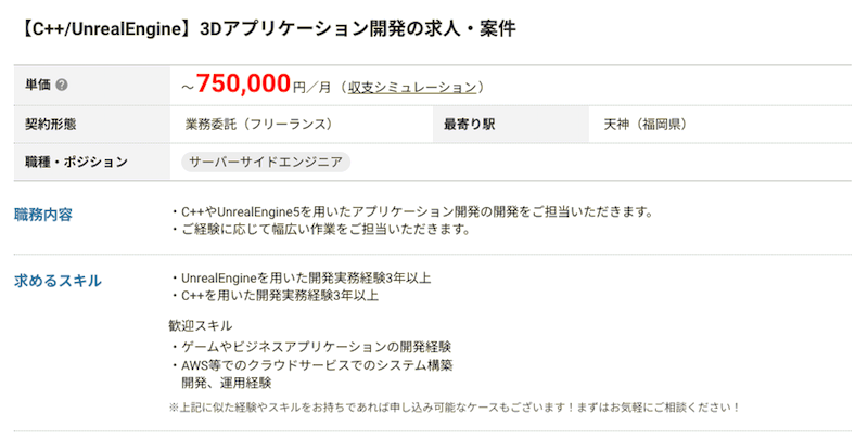したがってUnreal Engineの案件単価は、業界の中でも高く設定されていることが分かります。