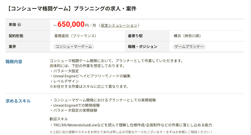 上記の案件は、Unreal Engineを用いてコンシューマーゲームの開発に携わる仕事です。