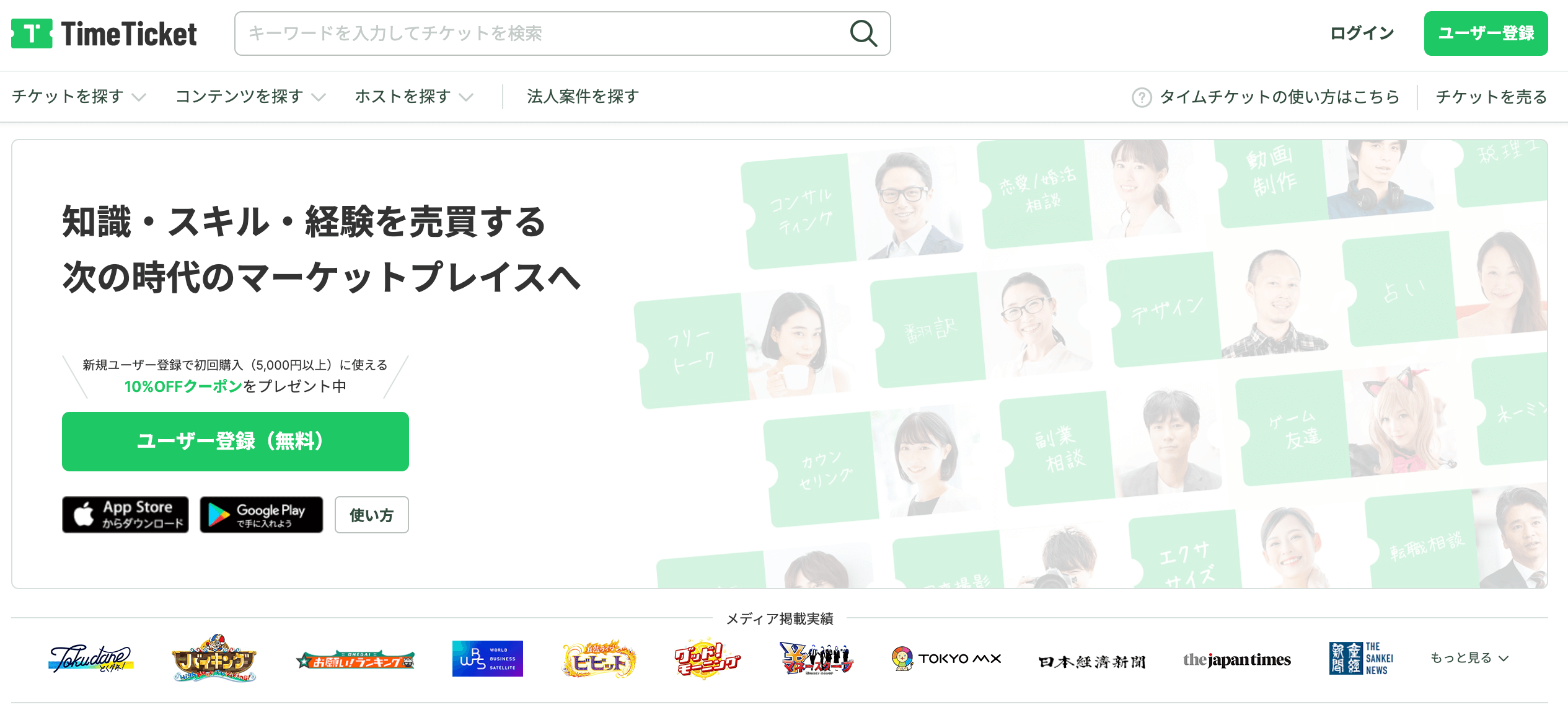タイムチケットは、スキルや経験の売買ができるマッチングサービスで、30分単位で業務が可能です。