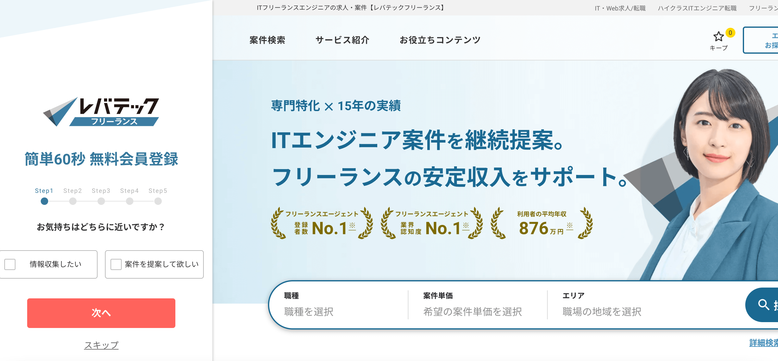 エンジニアに必要なスキルや独立に必要なノウハウも熟知しているので、初心者エンジニアに手厚い副業マッチングサービスです。