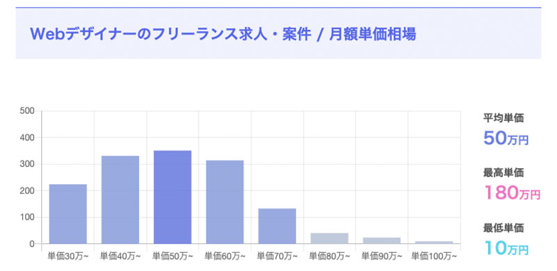 Webデザインやコーディング、SEO知識を有する人には、より専門的な仕事を任されやすく、上記のような最高単価180万円にも近づけるでしょう。