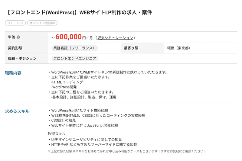 高単価の案件は、フリーランス市場に豊富に存在しており、50万円以上の案件も多数あります。