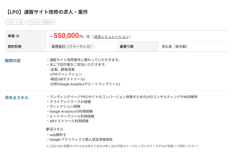 案件の中には、デザインだけでなくマーケティングやSEOに関わるスキルも求められ、その分報酬も高く期待できます。