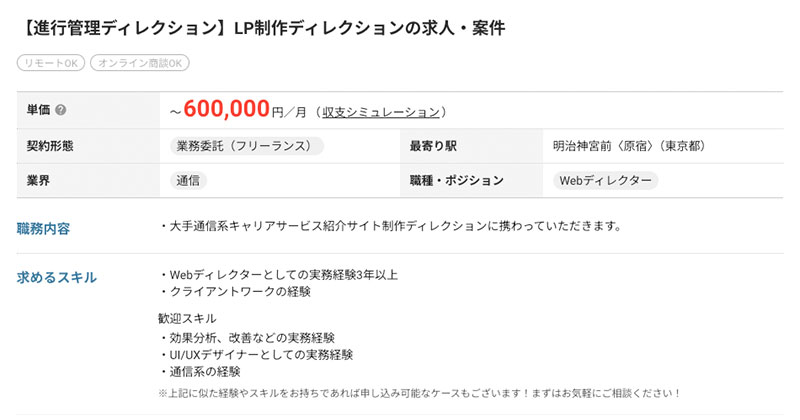 企業とフリーランスを直接つなぐため、案件が豊富で、LP制作に関連する依頼も多数あります。