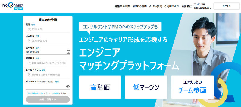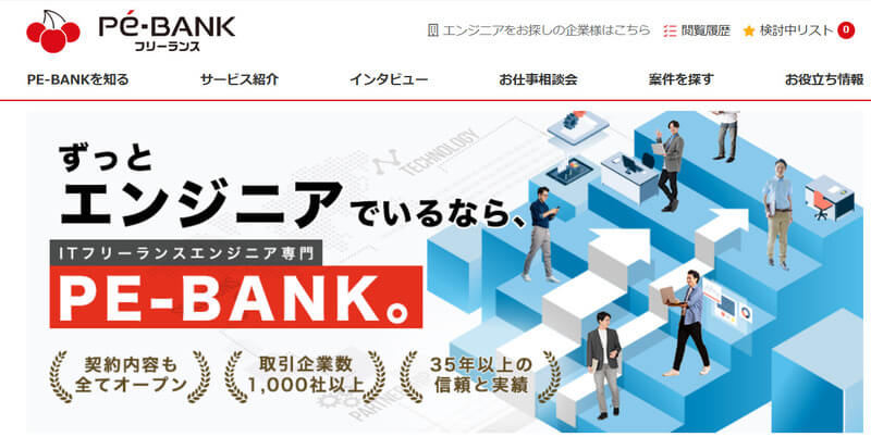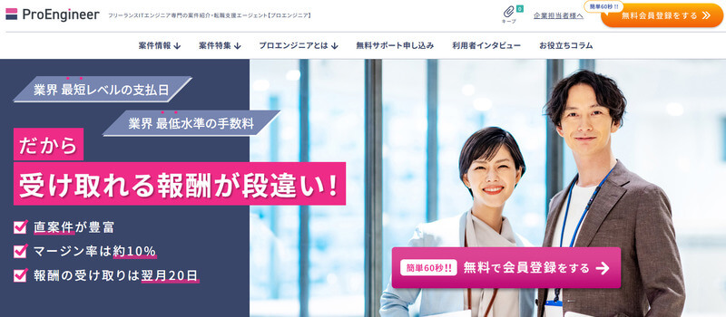 プロエンジニアはITエンジニア専門のフリーランスエージェントで、5,000件以上の案件を保有している。